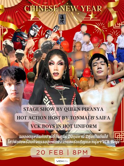 Stage show from… “Queen Piranha” followed by a hardcore party led by P' Tonmai @bear_seed, special guests Nong Saifa and the VCK Boys.